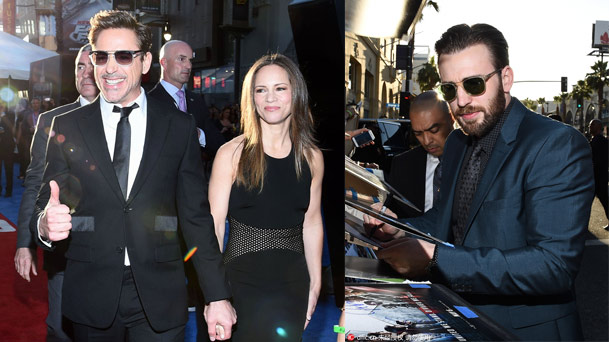 當?shù)貢r間2016年4月12日,美國洛杉磯,電影《美國隊長3》首映?!懊绹犻L”克里斯-埃文斯《美國隊長3》首映簽名到手軟,小羅伯特-唐尼緊牽愛妻“虐盡”女粉絲。
