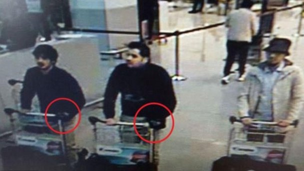 布魯塞爾機場的監控錄像捕捉到了3名嫌犯的樣貌,其中兩名人彈在襲擊中死亡,第三名嫌犯據信在逃。
