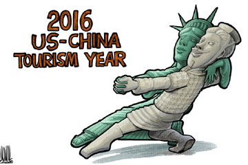 2016年是中美旅游年,期望中美兩個(gè)大國(guó)通過(guò)經(jīng)貿(mào)文化交流增進(jìn)了解,消除對(duì)抗。