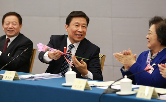 2016年3月8日,全國政協十二屆四次會議婦聯界別舉行聯組會議,中共中央政治局委員、國家副主席李源潮參加聯組會議討論,并祝女委員們節日快樂。