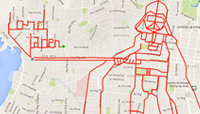 斯蒂芬·隆德(Stephen Lund)是一個來自加拿大的小伙兒,他喜歡騎行,每天大概能騎70公里左右。有一天,他突發奇想,通過GPS在地圖上記錄騎行軌跡,以此來作畫。