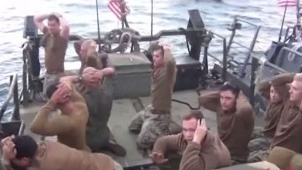 伊朗國(guó)家電視臺(tái)日前播出一段視頻,10名美國(guó)海軍因入侵波斯灣伺機(jī)探聽(tīng)伊朗被捕,他們雙膝下跪,雙手放在背后表示投降。伊朗軍方將他們運(yùn)送至法爾斯島關(guān)押16小時(shí)并進(jìn)行盤問(wèn)后將其釋放。