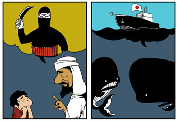 在小鯨魚眼里,日本的捕鯨船跟恐怖分子也沒什么區(qū)別吧!