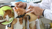 小動物們被固定在架子上,纖細(xì)的針灸針插入身上出現(xiàn)不適的部位;還有一些寵物則被扣上冒著煙的灸罐。它們享受到了和人類一樣的艾灸、電針、激光等中醫(yī)治療。