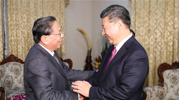 中共中央總書(shū)記、國(guó)家主席習(xí)近平13日在萬(wàn)象會(huì)見(jiàn)前老撾人民革命黨中央委員會(huì)總書(shū)記、國(guó)家主席朱馬里。