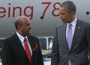 7月29日美國總統奧巴馬結束為期5天的非洲之行,從埃塞俄比亞首都亞的斯亞貝巴的博樂國際機場搭乘空軍一號離開。埃塞俄比亞總理德薩萊尼到機場為奧巴馬送行。兩人還在埃塞俄比亞航空公司首席執行官格布樂馬里亞姆陪同下,參觀了停機坪上的波音夢想飛機。