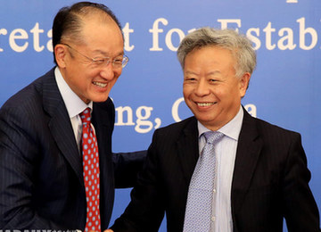 2015年7月16日,世界銀行集團行長金墉與亞洲基礎設施投資銀行多邊臨時秘書處秘書長金立群會晤,探討合作機會。