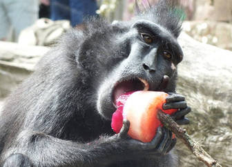 當(dāng)天氣溫已達(dá)30攝氏度,動物們捧起新鮮水果和雞尾酒做成的什錦棒冰捧,大快朵頤起來。顯然,它們對動物園準(zhǔn)備的這份禮物感到很滿意。