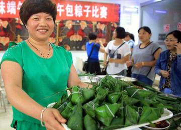 6月19日,江蘇省徐州市睢寧縣供電公司員工展示包好的粽子。當(dāng)日,江蘇省徐州市睢寧縣供電公司員工舉行“粽葉飄香 品味端午”包粽子比賽活動(dòng),迎接端午節(jié)。
