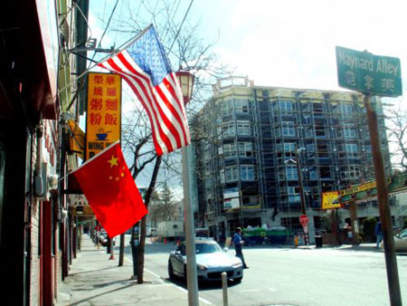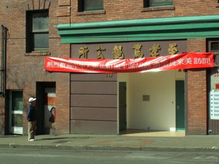 環球在線消息:在距離西雅圖市中心不遠的華人集中地唐人街,大街小巷高掛上五星紅旗與美國旗幟,其中兩家華人團體的大樓外,今早還分別掛上寫有“熱烈歡迎中華人民共和國胡錦濤主席蒞臨西雅圖訪問”、“熱烈歡迎中華人民共和國主席胡錦濤宗長來美訪問”的大紅橫額,吸引了當地華僑駐足觀看。