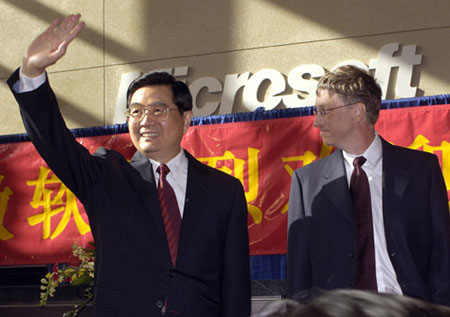 蓋茨首先致辭對胡錦濤主席訪問微軟表示熱烈歡迎。接著,公司的其他負責人向胡錦濤介紹了微軟公司的情況,演示了“辦公新天地”軟件。然后,胡錦濤參觀了微軟的“未來之家”。
