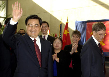胡錦濤受到華盛頓州州長葛瑞格爾和微軟公司董事長比爾·蓋茨等的迎接以及公司員工的列隊歡迎。