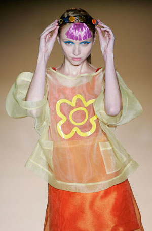 A model displays an outfit by Spanish designer Agatha Ruiz de la Prada during the Spring/Summer 2007-08 Pasarela Cibeles fashion show in Madrid September 17, 2007.(Agencies)