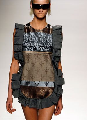 A model displays an outfit by Spanish designer Duyos during the Spring/Summer 2007-08 Pasarela Cibeles fashion show in Madrid September 17, 2007. (Agencies)