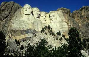 Mount Rushmore National Memorial was authorized in 1925. Located in the Black Hills of SW. South Dakota the memorial features the heads of United States presidents George Washington, Thomas Jefferson, Abraham Lincoln and Theodore Roosevelt carved into a granite bluff. The massive sculpture was carved into the rim of Mount Rushmore 150 m (500 ft) above the valley floor and each face is 20 m (60 ft) tall. The memorial cost nearly $1 million to create. The idea for the sculpture came from South Dakota historian Doane Robinson in the early 1920s. American sculptor Gutzon Borglum designed the memorial and supervised its construction. Borglum envisioned a monument to the growth of the United States and its most important leaders and chose Mount Rushmore as the site. Borglum's original design was a sculpture of the four presidents down to their waists. Construction of the memorial began in 1927. The head of Washington was completed first, followed by Jefferson and Lincoln. Roosevelt's head was unfinished when Borglum died in 1941 and his son Lincoln completed the work later that year.