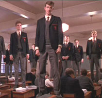 KEATING: Thank you for playing, Mr. Dalton. I stand upon my desk to remind myself that we must constantly look at things in a different way. You see, the world looks very different from up here. You don't believe me? Come see for yourself. Come on. Come on! Just when you think you know something, you have to look at it in another way. Even though it may seem silly or wrong, you must try! Now, when you read, don't just consider what the author thinks. Consider what you think. Boys, you must strive to find your own voice. Because the longer you wait to begin, the less likely you are to find it at all. Thoreau said, "Most men lead lives of quiet desperation." Don't be resigned to that. Break out! Don't just walk off the edge like lemmings. Look around you. There! There you go, Mr. Priske. Thank you! Yes! Dare to strike out and find new ground. Now, in addition to your essays, I would like you to compose a poem of your own, an original work. That's right! You have to deliver it aloud in front of the class on Monday. Bonne chance, gentlemen. Mr. Anderson? Don't think that I don't know that this assignmentscares the hell out of you, you mole.