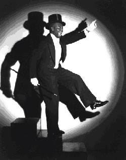 Also called Bill Robinson (1878-1949), American tap dancer(踢踏舞) and entertainer(演藝人員), known for his skill and originality, and one of the first black entertainers to achieve popularity among members of different races in the United States. Robinson was one of the first African American entertainers to become popular with both black and white audiences. While roles for black actors in Hollywood were severely limited at the time, Robinson managed to become a recognized film star, headlining the musical Stormy Weather and appearing in a number of pictures with child star Shirley Temple. But while Robinson's film work helped make him the best-known black performer in America, his frequent roles as domestic servants did little to earn him respect among his own people, and he was often seen as an "Uncle Tom" for his aggressively cheerful on-stage demeanor.