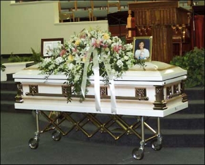 During the funeral and at the burial service, the casket may be covered with a large arrangement of flowers, called a casket spray. If the decedent served in a branch of the Armed forces, the casket may be covered with an American flag. It is considered inappropriate to use both.
