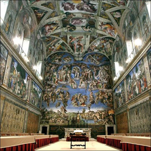 The museums, however, house only part of the Vatican's treasure, for many of the Renaissance and modern paintings are found in the galleries surrounding the various courtyards, such as the Cortile del Belvedere and the Cortile San Damasco. Adjoining the Cortile San Damasco is the building containing the Borgia apartments on the first floor and the Raphael rooms on the second. The works of Raphael and his followers in the building make it one of the most famous artistic monuments in the world. The Vatican Library lies all along the western side of the Giardino della Pigna and Cortile del Belvedere. It is one of the world's richest repositories of ancient and medieval manuscripts in many languages. The principal chapel in the Vatican is the Sistine Chapel, the ceiling of which was painted (1508–12) by Michelangelo.