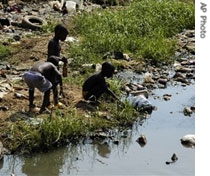 Angolan children gathering water at a waste-filled stream. A cholera epidemic in Angola killed over one thousand people last year. Angolan children gathering water at a waste-filled stream. A cholera epidemic in Angola killed over one thousand people last year. Cholera is a serious bacterial disease found mainly in developing countries. People can get it from water or food that comes in contact with human waste. The intestinal infection causes a loss of fluids.