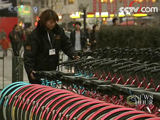 "It's good exercise and environmentally-friendly. I don't need to own a bike,I can just rent it. It saves a lot of time and work." said a bike renter.