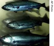 A study from Canada says fish farms are a threat to some populations of wild salmon. It says the danger is from sea lice, which are small organisms that feed on fish.