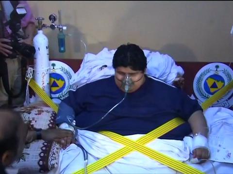 沙特政府多部門聯動,在8月19日將一名體重1345磅(約610公斤)、不能下床走路的沙特男子空運到首都利雅得治療。