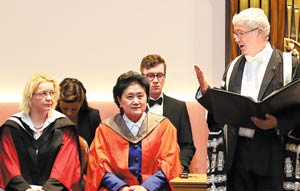 Visiting Chinese Vice-Premier Liu Yandong received an honorary doctorate from the University of Edinburgh on Tuesday during the second day of her four-day official visit to the United Kingdom.