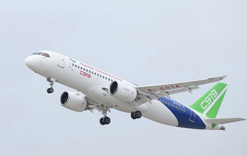The C919, China's first home-developed large passenger plane, gained another 55 orders on Tuesday from ICBC Leasing Co Ltd, China's largest aircraft leasing company by assets, lifting its total orders to 785.