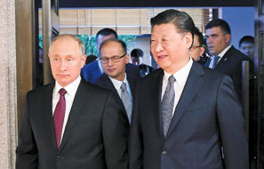 President Xi Jinping and Russian President Vladimir Putin agreed on Sunday to stay committed to the goal of denuclearizing the Korean Peninsula and to make their communication and coordination closer.