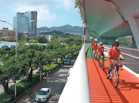 In order to ease traffic congestion, Xiamen introduced China's first elevated bicycle path in its downtown area and about 5,000 people use it each day as they commute between their homes and offices.