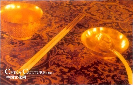 When the Chinese began to use chopsticks as an eating instrument is anybody’s guess. They were first mentioned in writing in Liji (The Book of rites), a work compiled some 2,000 years ago, but certainly they had their initial form in the twigs which the primitive Chinese must have used to pick up a roast after they began to use fire. It is likely that people cooked their food in large pots which retained heat well, and hasty eaters then broke twigs off trees to retrieve the food. The earliest evidence of a pair of chopsticks made out of bronze was excavated from Yin Ruin’s Tomb 1005 at Houjiazhuang, Anyang, Henan province, dated roughly 1200 BC.