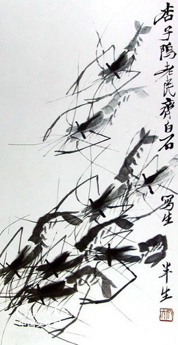 He is especially good at describing shrimps. The spirit of shrimp and the way it floats above water are vividly illustrated with a little amount of ink.