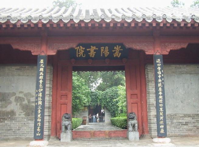 Songyang Academy is located at the south foot of the Songshan Mountain, 3 kilometers north of Dengfeng County seat. Embraced by hills to the east and west, Songyang Academy enjoys a beautiful view with two brisk clear springs joining in front of it into a river and fertile fields extending far away to the south. Standing at the academy gate, visitors can see all the peaks of the Songshan Mountain and overlook the Dengfeng County seat. Being an ideal place for study, it is laurelled as one of the Four Academies of the Song Dynasty (960 – 1729 A.D.), together with the Suiyang Academy in Suizhou (also named “Yingtian Academy”), the Yuelu Adacemy in the Hunan Province and the Bailudong Adademy in Jiangxi Province.