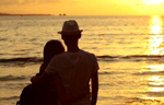 A pair of lovers enjoy the sunset on a beach in Sanya.