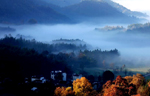 The fog-covered countryside residences in Tachuan village, Huangshan, east China's Anhui province.