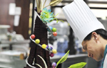 A contestant makes his creation at a qualifying test for the World Chocolate Masters (WCM) competition in Taipei.