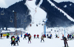 People ski at a ski field some 38 kilometers south of Urumqi.