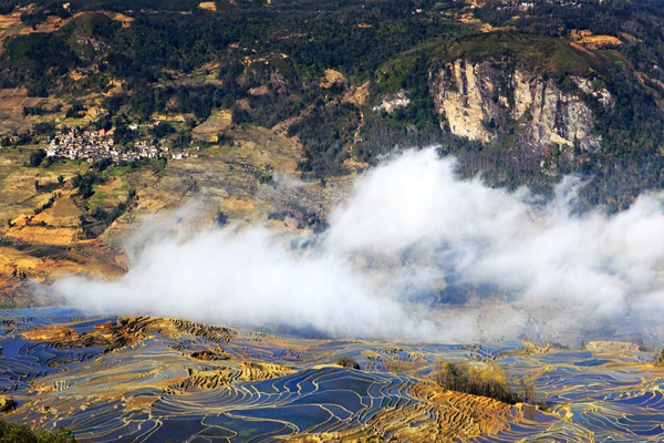 Located in southwest China's Yunnan province, the Yuanyang terrace is a natural masterpiece, plowed by generations of the Hani ethnic people. The magnificent terrace, which is renowned for its farming techniques utilizing different parts of the mountain, spreads extensively at the south bank of the Red River, or the Honghe. The 11,000 hectares of terraces in Yuanyang county is the core of the Red River Hani Terrace. [Photo/sohu.com]