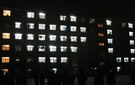 Days of observing lives on the street stimulated the designer to use 170-meter-long wood strips crafted into "annual rings" to represent passing days and years. He also scattered 300 dots on the rings, which he calls "memory dots".