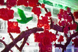 A statue of a swan girl emerges from a snow pile in Sun Island of Harbin, capital city of Northeast China's Heilongjiang province.