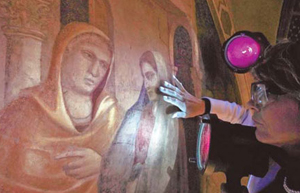 Restorers using ultra-violet rays have rediscovered rich original details of Giotto's paintings in the Peruzzi Chapel in Florence's Santa Croce church that have been hidden for centuries.