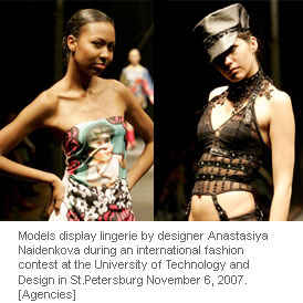 A model displays lingerie by designer Anastasiya Naidenkova during an international fashion contest at the University of Technology and Design in St.Petersburg November 6, 2007.