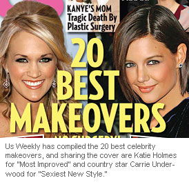 Us Weekly has compiled the 20 best celebrity makeovers, and sharing the cover are Katie Holmes for "Most Improved" and country star Carrie Underwood for "Sexiest New Style."