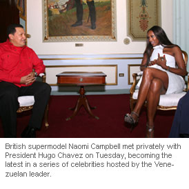 British supermodel Naomi Campbell met privately with President Hugo Chavez on Tuesday, becoming the latest in a series of celebrities hosted by the Venezuelan leader.