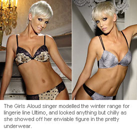 The Girls Aloud singer modelled the winter range for lingerie line Ultimo, and looked anything but chilly as she showed off her enviable figure in the pretty underwear.