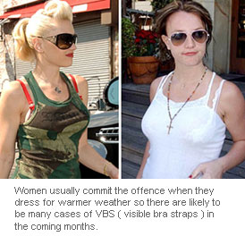 Women usually commit the offence when they dress for warmer weather so there are likely to be many cases of VBS ( visible bra straps ) in the coming months.