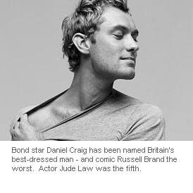 Bond star Daniel Craig has been named Britain's best-dressed man - and comic Russell Brand the worst.