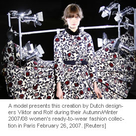 A model presents this creation by Dutch designers Viktor and Rolf during their Autumn/Winter 2007/08 women's ready-to-wear fashion collection in Paris February 26, 2007.
