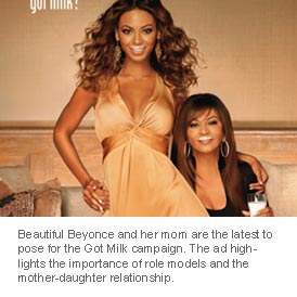 Beautiful Beyonce and her mom are the latest to pose for the Got Milk campaign. The ad highlights the importance of role models and the mother-daughter relationship.